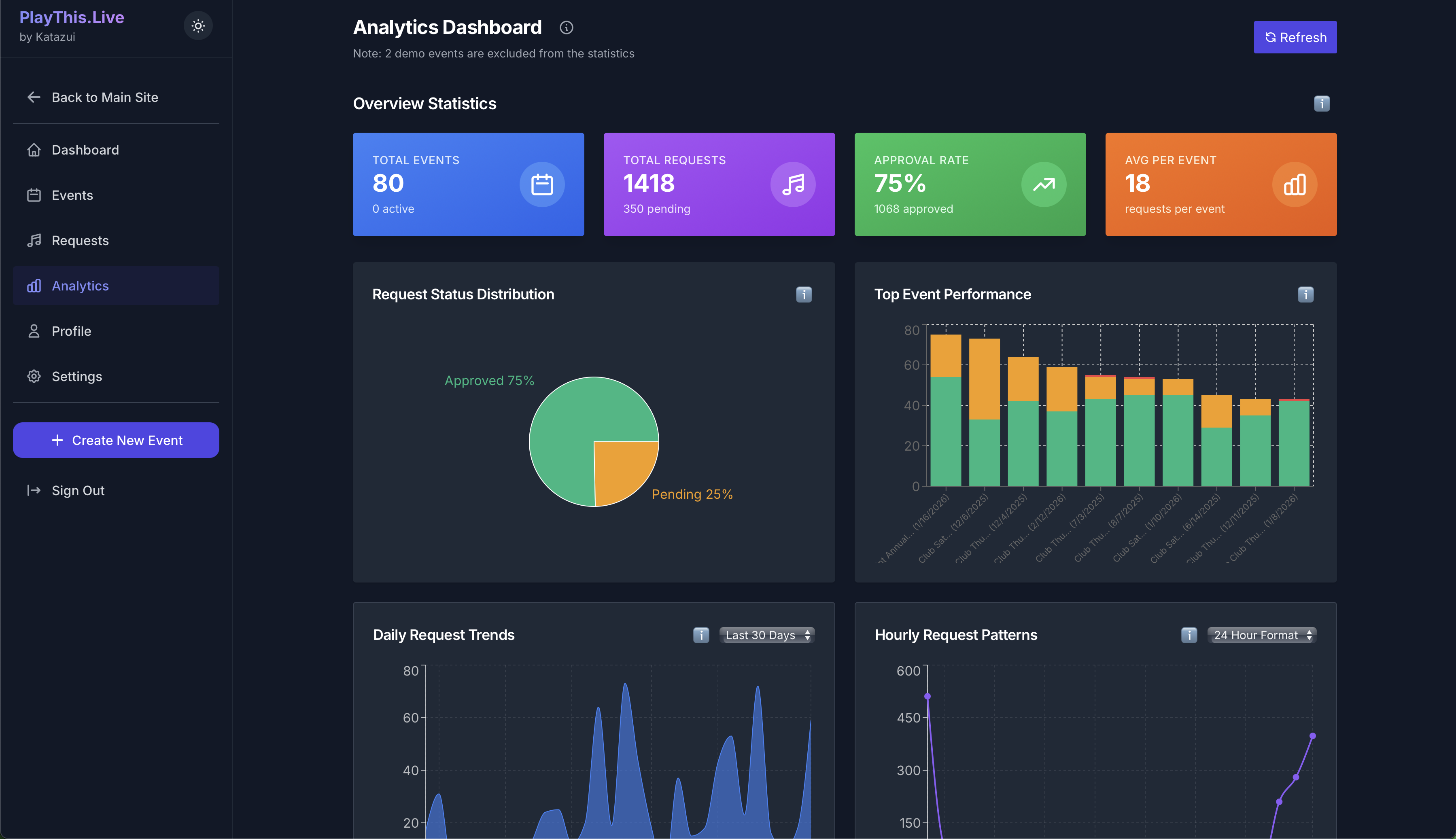Advanced analytics (Pro subscription) help you spot trends across events and understand what really moves your crowd.